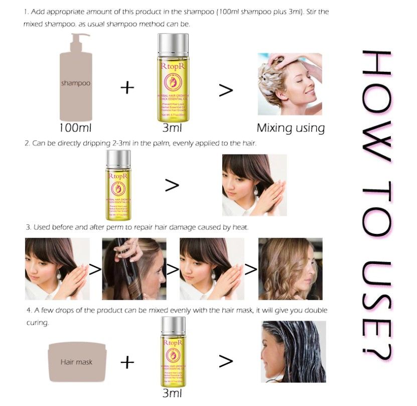 2. Can be directly dripping 2-3ml in the palm, evenly applied to the hair.
