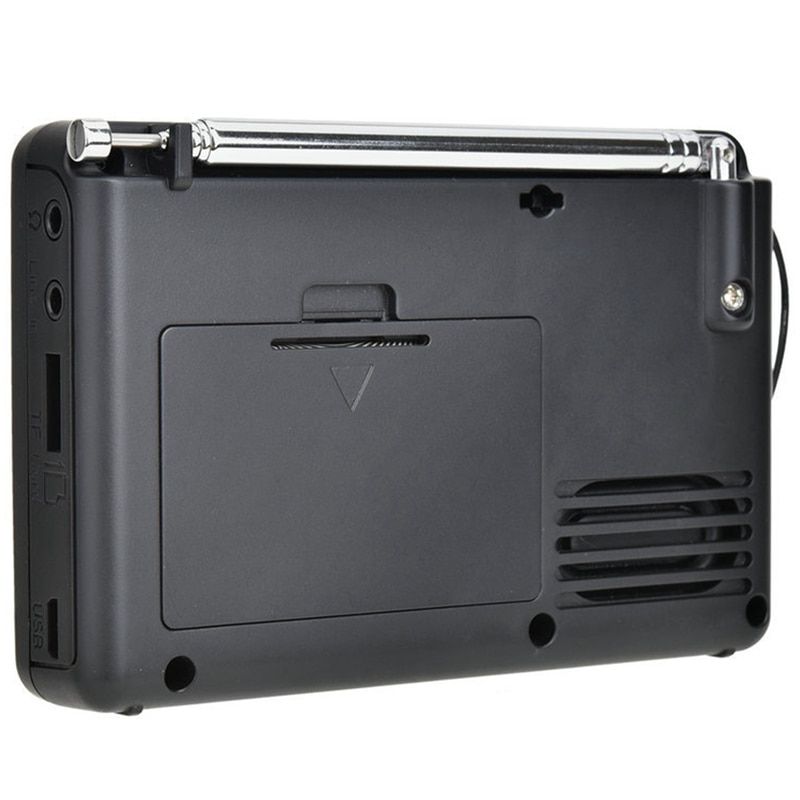AM / FM / SW / BT / TF full band stereo recorder with Bluetooth card REC recorder bass speaker MP3 player speaker with sleep timer Description: - Portable and easy to carry. There is a support frame at the back. - Built-in large capacity 1000MAH lithium battery (lithium battery uses general BL-5C lithium battery), long battery life. The battery is detachable to extend the life of the product - FM AM SW has stable reception in all bands, intuitive button design, and digital keyboard-type channel selection in radio mode. Easy to operate. - Power-off memory function, power-off memory function - Dot matrix LCD digital display, display size: 43X22mm - Complete display content: radio frequency point, radio frequency band, song title synchronous display, playing time, battery symbol indication, volume adjustment, lock and unlock status, system design related functions (such as language selection, medium wave step value 9KHZ, 10KHZ interchangeable, backlight lighting time, backlight dimming, etc., give users a clear operating instructions. - Channel search mode: automatic search and save station, automatic station search, keyboard-type digital channel selection - Station saving mode: Manual station saving, fully automatic searching and storing stations -The capacity of the radio chip is large, the number of storage can reach 440 (80 in FM mode, 60 in medium wave mode, and 300 in short wave mode) - With lock, mute, delete radio, can be set to 0-10-20-30-40-50-60-70-80-90 minutes automatic shutdown function, backlight time adjustment, backlight brightness adjustment, humanity The functions are more 'full'. - Using the 5.0 version of Bluetooth connection, it can be used for short-distance music transmission (receiving distance less than/equal 10 meters), and can be easily connected to Bluetooth devices of digital products such as laptops, mobile phones, PDAs, etc. - Supports TF card MP3, WMA format music playback, and has a point memory function, which can support a maximum of 32G TF card playback. Support to select "play single loop, loop all", select to play "sound effect" seven selectable sound quality effects - Support 3.5MM audio input playback. HIFI sound quality effect - Support recording function, play recording, delete recording function - Support three languages display (Chinese, English, Spanish), users can adjust according to actual needs - Medium wave step value, users can adjust it according to actual needs. Specifications: Supported memory card type: Trans Flash cards FM frequency range: 64-108 MHz AM frequency range: 522-1710 kHz SW frequency range: 4.75-21.85 MHz (nine meter waves) TF card playback format: MP3. WMA Bluetooth version: 5.0GHz Screen resolution: 128 * 64 External audio source playback: 3.5MM jack audio source input Number of radio stations: 440 (FM mode: 80; AM mode: 60; SW mode: 300) Headphone output interface: standard 3.5mm stereo Audio input interface: standard 3.5mm two-channel Charging data interface: Micro USB-5P Speaker: 40mm / 4Ω / 3W External power: DC 5V Minimum working voltage: 3.3V Output power: 1.6W Specification for lithium battery: BL-5C 1000mAh/ 3.7V Product size: 120 * 79 * 23mm Package Included: 1 X Portable Digital Radio 1 X Charging Cable