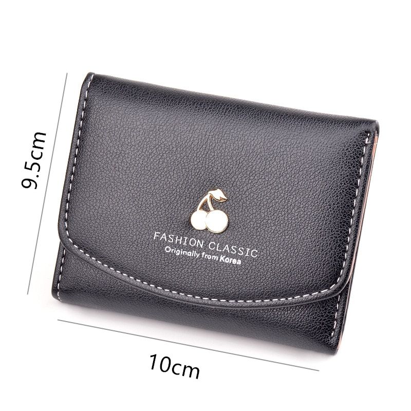 Small Women Mutii-Function Foldable Wallet Cherry Korean Style Features: 1.Cherry Korean fashion women/girls folding multifunctional wallet. 2.Material: PU leather material, no wrinkles, no peeling, durable. 3.Wallet structure: 5 card slots, 1 photo slot, 1 bill slot, 2 hidden slots. 4.Large capacity: small size and large capacity, multi-compartment design so that items are not stored in a mess. 5.Hardware decoration: fashionable metal cherry decoration, thick and shiny, elegant temperament. 6.Fine car lines: use high-quality leather lines, neatly and tightly routed, highlighting fine workmanship. 7.Exquisite snap button: high-quality hardware snap button, durable material. 8.Wear-resistant lining: select high-quality lining, wear-resistant and dirt-resistant, and meticulous in details. Note: There will be some errors in manual measurement. Item type: Women wallet Material: PU Size: 10*9.5*2cm Packing: independent OPP bag Process: Handmade Package Included: 1* Ladies wallet