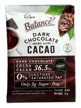 BALANCE DARK CHOCOLATE MIXED WITH ORGANIC CACAO Full Carton Case 12 boxes with 12 sachets each Mix 1 Sachet of Dark Chocolate with Organic Cacao with 100 ml of hot water. Enjoy your energy cup everyday quick and easy. Refreshing Iced Dark Chocolate. Mix 1 sachet of Dark Chocolate with Organic Cacao with 30 ml of hot water. Sir briskly until disolved. Pour over Ice, stir in ice water to 100 fluid ml. This method keeps the melting ice from "watering Down" the chocolate flavor. Alternatively, put 2 sachets in 100 ml of hot water stiring well then pour over Ice Mocha? One sachet of Dark Chocolate with Organic Cacao combined with 1 sachet of Trio Instant coffee (item number 184742) to 200 ml of hot water. Delicious. Dark Chocolate Dipping. Mix 2 sachets with 25 ml of hot water. Ready to dip your strawberries or other favorite fruit. Great with apple wedges.