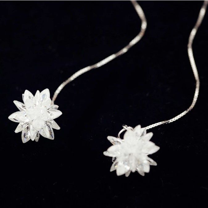 Long Design Silver Crystal Ice Earrings