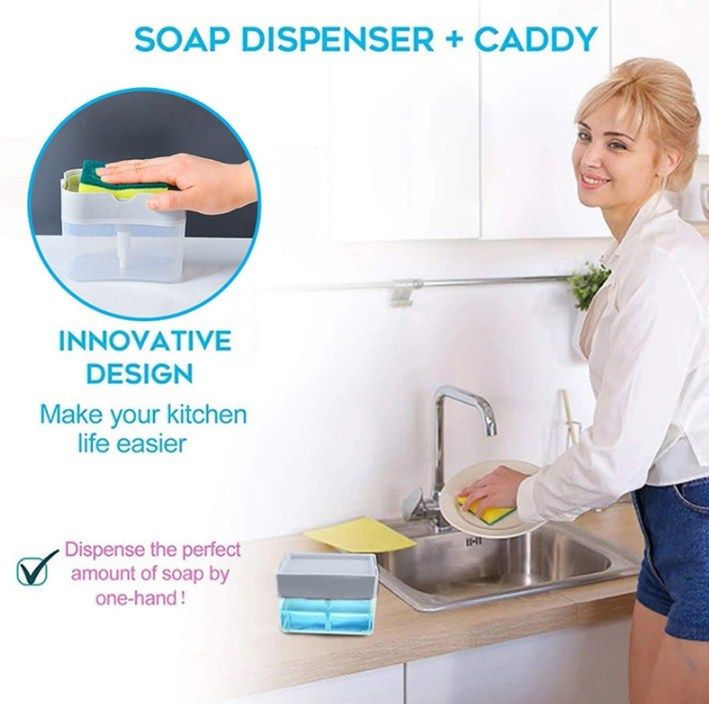 100% Brand New! Features: - 2 in 1 design: Soap dispenser and caddy, single hand operation. Sink dispenser with attached caddy. You can use it to hold sponges, while keeping water off of kitchen counters. - Precise dispensing: Gently press down on the top plate to dispense soap directly on to the sponge. It will dispense the perfect amount of dish soap on to the sponge. - Large capacity: The soap dispenser sponge holder has a capacity of 380ml, no need to refill it often. - Ideal for home, school, office, hospital, hotel, restaurant and so on. - Easy to use: Use the included sponge to press down on the pump, which dispenses the perfect amount of dish soap up onto the sponge. - Suitable soap: It is suitable for all kinds of liquid soap. - Compact design, you can put it on the kitchen countertop without taking to much space. - One hand operation. - Dispenses the perfect amount of dish soap up onto the sponge. - Suitable for all kinds of liquid soap. Color: White, Silver, Gray Size: 140mm x 105mm (5.5" x 4.1") Material: Eco Friendly Plastic Capacity: 380ml Package Content: 1 x 2 in 1 soap dispenser and sponge