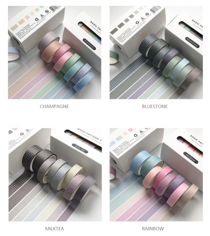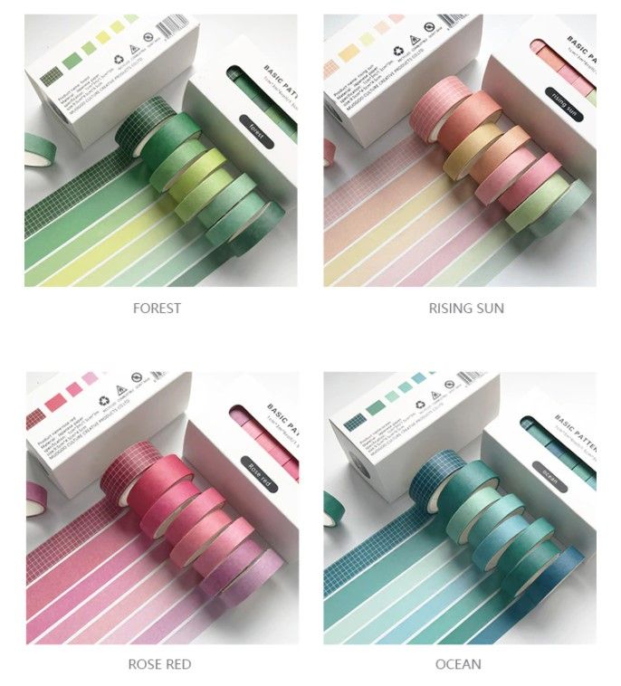 Product name: 8 colors combination set washi tape Material: washi paper Packing: 8 colors combination set Specification: (1 .5cm*2+1cm*6) *3m Weight: 45g