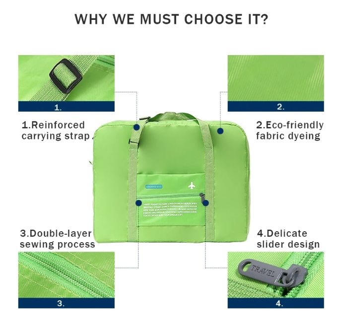 2. Waterproof, multifunctional and large capacity design can be used as a travel extra bag, gym bag, shopping bag and etc.