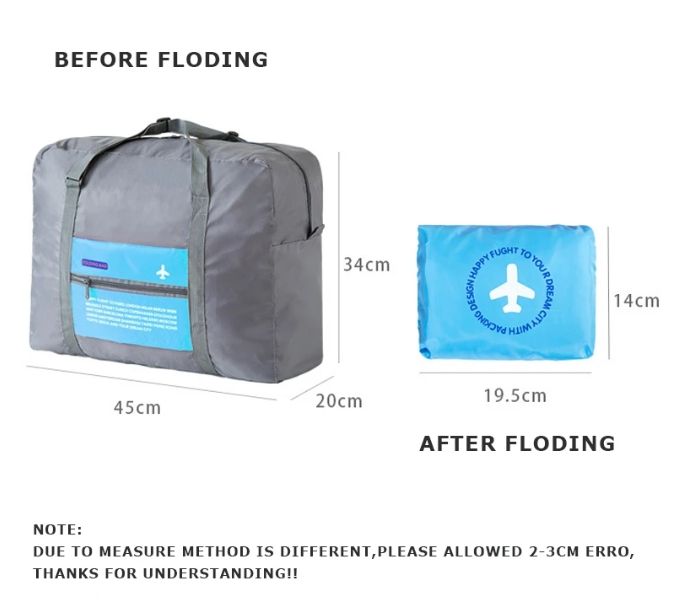 Main Feature: 1.Good quality fabric, thick & sturdy, good tear resistance. Removeable and adjustable shoulder straps, easily to carrying on your shoulder or bringing in your hands. 2. Waterproof, multifunctional and large capacity design can be used as a travel extra bag, gym bag, shopping bag and etc. 3. When not being used, fold it into a small compact, lightweight and portable. 4. Great for organizing your travel luggage and documents or other articles of daily use. 5. It is a must-have travel bag for convenient, safe and smart traveling, and the best gift for your friends and family. 6. Lightweight, easy to carry with you. Specifications: Gender: Unisex Style: Casual, Fashion Closure type: Zipper Pattern: Solid Material: Nylon Color: Random Size: Height: 34CM/13.38" Length: 45CM/17.72" Width: 20CM/7.87" Folded: 19*14*3.5cm *Please allow some errors Package included: 1*Travel Luggage Storage Bag