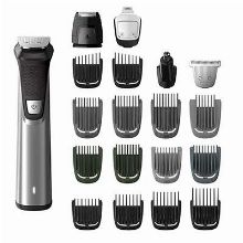 The Philips Norelco Multigroomer All-in-One Trimmer delivers an unbeatable shave and grooming experience. Armed with DualCut technology for maximum precision, this 23-piece, all-in-one trimmer does it all. It features a full metal motor and a drive train reinforced with tempered steel to deliver maximum torque and power, as well as a lithium ion rechargeable battery for up to 5 hours of run time per charge. Reinforced cutting guards prevent bending and buckling, ensuring an even trim every time, while self-sharpening steel blades help ensure this Norelco series 7000 will remain as sharp as day one—even after three years of use! Makes a great birthday or Father's Day gift. In the box: • Stainless steel handle • Full-size trimmer • Precision foil shaver • Precision detail trimmer • Extra-wide hair trimmer • Nose and ear trimmer • 6 Extra-wide hair guards • 3 Beard guards • 2 Stubble guards • 2 Body guards • Eyebrow guard • Storage bag • Cleaning brush • Power cord