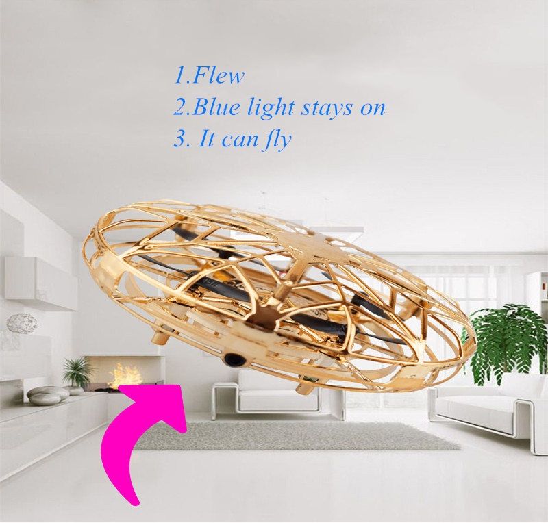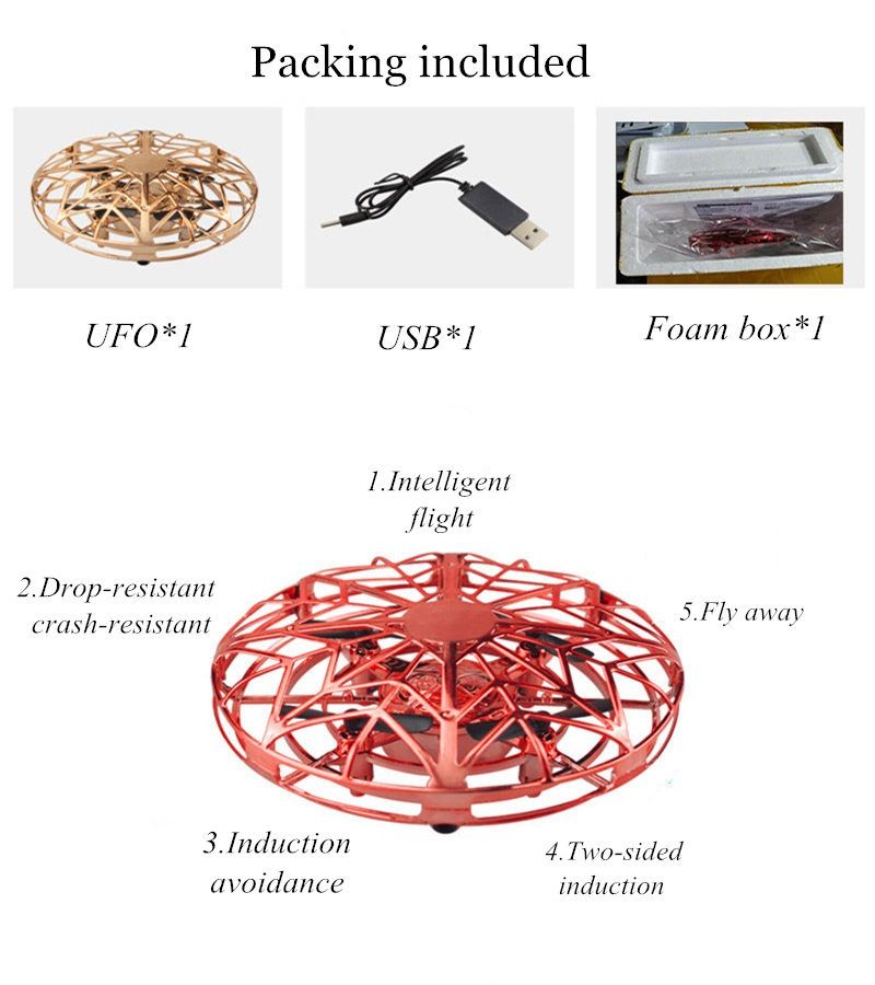Gravity-Defying Flying UFO Toy Let’s take flight We may not be able to see UFOs, but we can make believe with a toy that can fly at your command. Our Gravity-Defying Flying UFO Toy flies high when it’s time to have fun. Ready for fun? Simply turn on the power button, toss this UFO into the air, and watch it hover around you. You can also control it with your hands to make it fly in multiple directions — it’s perfect for impressing friends and family or self-entertainment. More info and product video at https://udonshopping.com/product/gravity-defying-flying-ufo-toy/ It’s smart (like out-of-this-world smart) Guided by an ultra-smart infrared sensor, this toy follows you and flies with a mind of its own. Just turn it on and drop (or toss) it into the air and watch it go. Gesture it to go forwards, backwards, or upwards with the signal of a hand — no controllers required — for 360-degree rotation. Plus, the built-in infrared sensor utilizes hover technology so that the UFO can detect nearby objects so it won’t crash into any valuables, walls, or people. High-flying fun that’s safe Aside from its ultra-sharp sensor, the Gravity-Defying Flying UFO Toy also features a flexible mesh barrier for its propeller, meaning you’ll be able to move or hold the toy in your hand without fear of getting cut or hurt. Constructed from ABS plastic, the toy is also non-toxic. Lights up the night Built-in LED lights help illuminate the night sky or a dark room. Choose from red, blue, or gold finish for your UFO, purchase, and get ready to command your own spacecraft! USB chargeable Charge up this lithium battery-powered toy with a USB cord (included with purchase). The UFO fully charges in 35 minutes for eight-ten minutes of uninterrupted flying time. Go near or far The UFO’s sensor detects up to 33 feet (10 meters) for commands up close or from a distance. Fun for anyone Suitable for kids as young as five years old, this out-of-this-universe toy will impress and delight children big and small. Adults will love it too!