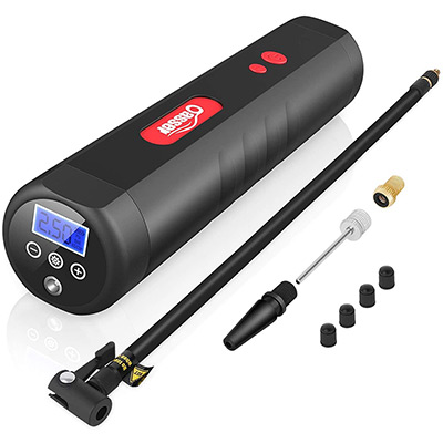 Don't let low pressure get you down! Whether your bike or car tire is low, the volleyball needs filling, or your swimming float needs inflating, the 9.6 x 2.2-inch Oasser Portable Air Compressor has your back. Featuring a portable design with an extra-Large 2000mAh capacity, the rechargeable Oasser 120psi air compressor can inflate a car tire in under 6 minutes. It comes with a backlit LCD digital pressure gauge (with optional PSI, BAR, KPA, Kg / cm² units) and preset settings to avoid over inflating and damage. A built-in, super-bright LED flashlight gives you plenty of emergency lighting when you need it. Includes 110V AC/DC and 12V car charger adapter, along with nozzles and adaptors for various applications.
