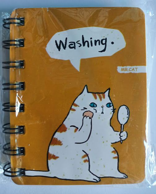 Attractive Washing Cat Notebook Lined Paper Spiral Bound 4 inches High, 3.25 in wide 75+ Pages Great to carry in your Purse or Briefcase Record Notes, Appointments, Passwords, To-Do Lists, Shopping Lists, Important Dates Anything you need to keep handy