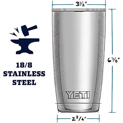 With the YETI Rambler 20oz Stainless Steel Vacuum Insulated Tumbler w/MagSlider Lid, your beverages will stay ice cold or piping hot longer. YETI has over-engineered these double-wall insulated tumblers with a puncture- and rust-resistant 18/8 stainless steel body and a Duracoat coating that won’t crack, peel or fade—which means your drink still keeps its temperature no matter how much of a beating this cup takes. They’re BPA-free, have a No Sweat Design to make sure your hands stay dry, and are dishwasher-safe. Plus the crystal-clear, spill- and shatter-resistant MagSlider lid lets you check your drink status in a flash. This YETI 20 oz Rambler Tumbler stands 6 7/8 inches high and has a lip diameter of 3 1/2 inches. As with all YETI Tumblers, it fits well in standard sized cup holders.