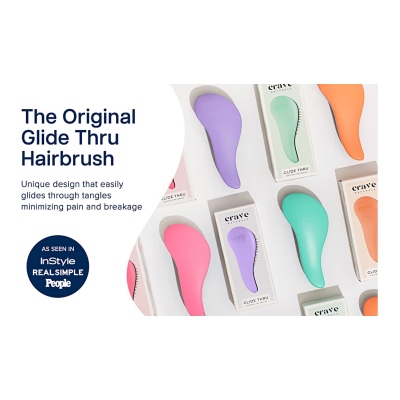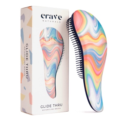 Ever since the Crave Naturals Glide Thru Detangling Hair Brush for Adults & Kids launched, other companies have tried to copy it! But only the Glide Thru Detangling Brush has firm, quality bristles that will not lose their shape! The best at removing knots and tangles, this brush features a unique design that massages the scalp and increases circulation while it separates the hair sideways instead of down, gently unraveling even the toughest tangles. Perfect for all hair types. Available in several colors.