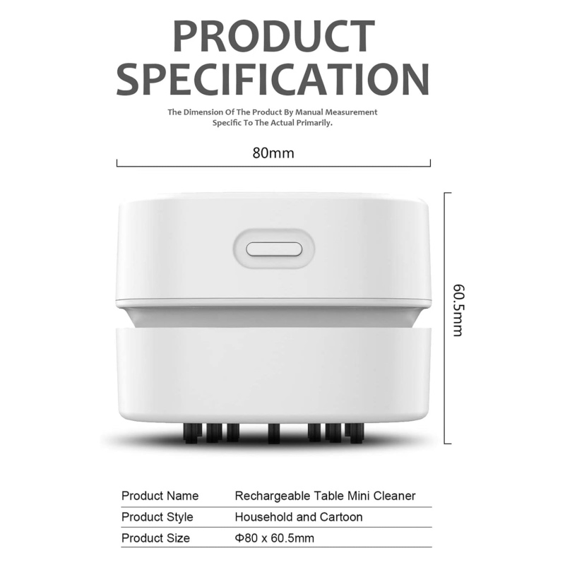 The small but powerful ODISTAR Desktop Vacuum Cleaner makes quick work of dirt, particles, and dust on your desk, keyboard, corners, crevices, and other small spaces, where a larger, bulkier vacuum would be a hassle. Small enough to carry it anywhere and anywhere, this mini-vacuum operates on two 2 AA batteries (not included) with an operational time of up to 90 minutes. Cleanup is quick too. Just open the bottom cover to dump the waste bucket. IncIudes a brush for stubborn stains.