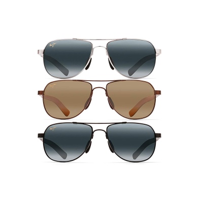 Named after a west shore surf break just south of Lahaina known for waves that break close to shore, the classic Maui Jim Guardrails Aviator Sunglasses are a perfect mix of trusted durability and clarity with their lightweight frame and bright, PolarizedPlus2 lens technology. These premium sunglasses shield your eyes from glare and harmful UV rays, while enhancing colors to reveal the true beauty of the world around you. And the durable and featherweight MauiFlex memory metal frame remembers fit and shape longer than traditional metal frames. Lens width: 58 millimeters; Lens height: 43 millimeters. Available in three tints: • Gloss Black/Neutral Grey Polarized (most useful in bright, direct sunlight) • Silver With Blue and Light Blu/Neutral Grey Polarized (most useful in bright, direct sunlight) • Metallic Gloss Copper/HCL Bronze Polarized (versatility in changing light conditions) Makes a great gift for both men and women with medium face shapes.