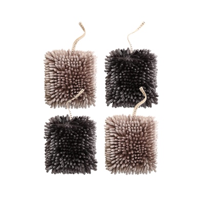 Super soft and super absorbent, these Chenille Hanging Hand Towel Balls quickly absorb water when and where you need it. Featuring a lanyard for hanging in convenient places and a built-in high-quality sponge that absorbs water quickly, the fluffy, square microfiber towel won't scratch surfaces and dries quickly. Great for a variety of cleaning tasks in the kitchen and bathroom, as well as cleaning up spills and moisture on tables, computer screens, windows, mirrors, car interiors, and more. Each towel measures about 12.6*6.7 inches. Includes 2 brown and 2 gray towels.