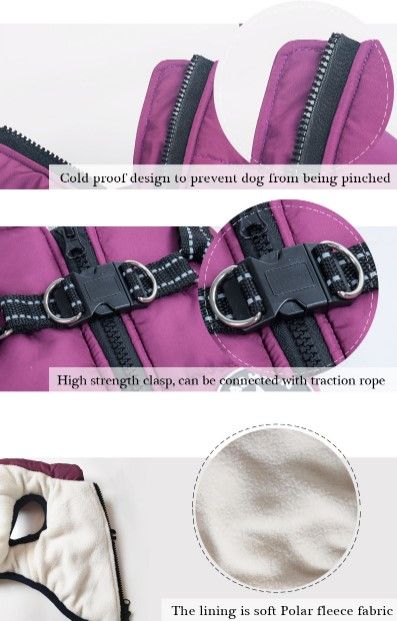 Made of highly waterproof fabric, applicable for the cold days. The high-quality zipper is easy to use and convenient to wear and take off. Designed with an adjustable harness, it is multifunctional and practical. The reflective design can ensure safety for night walking. The D-shaped ring is thick and durable, which can bear more strong pull strength. Material: Fleece Season: Autumn/Winter/Spring Size: S, M, L, XL,2XL,3XL,4XL,5XL (consult the chart) Please measure your pet before buying, and check our size table to choose the appropriate size. Please do not choose this dog clothes according to your habits. Different styles of clothes have completely different sizes. Thank you for your cooperation. Notes: 1. Please allow 1-3 cm difference due to manual measurement. 2. Due to the screen difference, the color may be a little different from what you expect, please allow it. 3. 1.00cm=0.39"