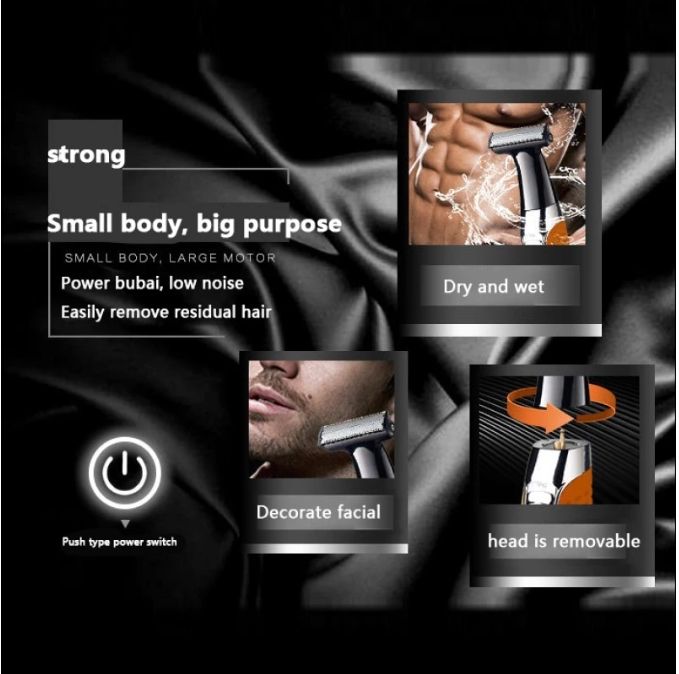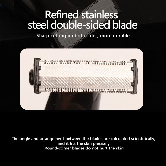 Instructions: This product is a rechargeable shaver, and it's full body washable. This product has two sides heads ,individually reflex action system can always get close to the facial contour to effectively shave the hair of any lengths and in any growing directions. Reasonable design & the cooperation of two blades will bring better shaving effect. Specification: Product: rechargeable shaver Input Voltage: USB Charging 5V Power Consumption: 3W Using time: About 55min Charging time: 8H Safety Warning : Only the included charger can be used. Make sure the charge will not become damp. Package content: 1 x razor 4 x limit comb 1 x cleaning brush 1 x user manual 1 x USB cable