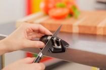 V-Grip Bottom for use on edge or counter High-quality metals with a range of color tones Soft grip handle for comfort and control Used on straight edge blades only Easy to use. The product may have copper brazing/solder used to bond two metals together. KitchenIQ Edge Grip Features Unique design sharpens straight edge double-beveled Euro / American style knives. Two stages of sharpening, in one small compact unit at a great value! Coarse sharpening slot includes carbide blades that quickly sharpen dull or damaged knives with just a few pulls. Fine slot’s ceramic rods are ideal for finishing and polishing the edge, and are perfect for light touch-ups to an already sharp knife. Edge Grip Bottom allows stable sharpening on the counter top or edge of the counter top or table. Designed in the USA by Smith’s Consumer Products, Inc. the Edge Experts Since 1886. Stainless steel and soft touch accents.