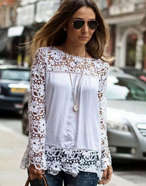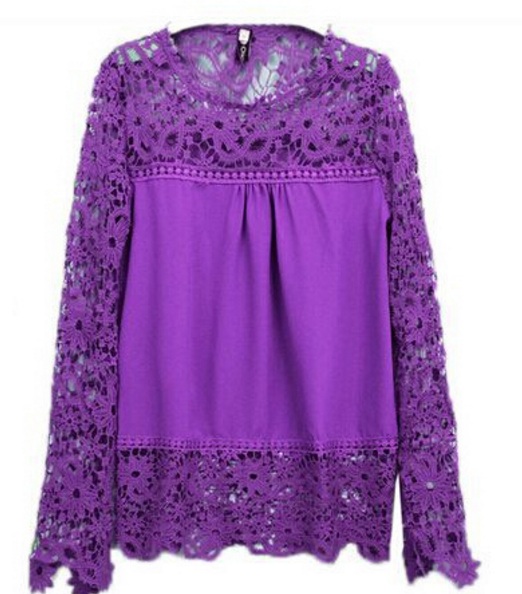 100% Brand New! Gender: Women Decoration: Lace Clothing Length: Regular Pattern Type: Solid Sleeve Style: Regular Style: Casual Fabric Type: Chiffon Material: Cotton, Polyester Collar: O-Neck Color Style: Natural Color Sleeve Length: Full Sizes: S-3XL Colors: Black, White, Blue, Red, Purple, Yellow, Coffee Important Notice: Asian Sizes Are Usually Smaller Than Western Sizes!