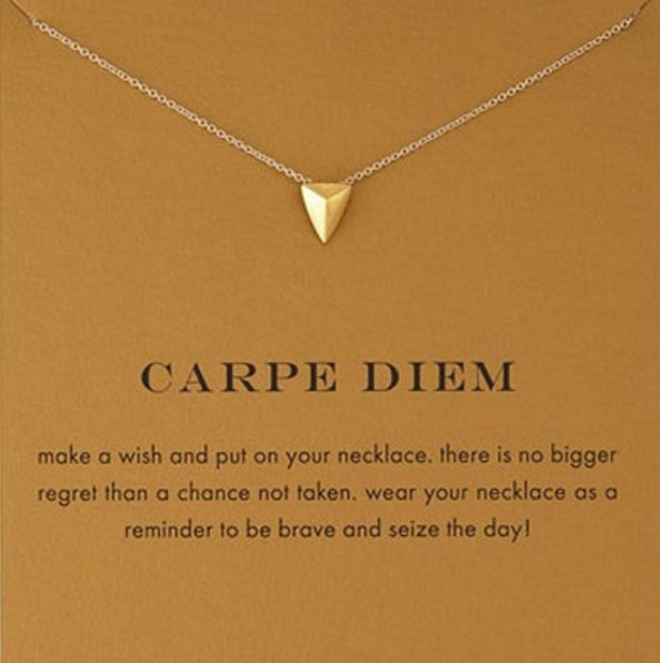 100% Brand New! Necklace Type: Pendant Necklace Fine or Fashion: Fashion Gender: Women Pendant Size: 1cm Length: 40cm Style: Trendy Chain Type: Link Chain Material: Zinc Alloy Gold Plated Shape\pattern: Geometric Model: Dogeared CARPE DIEM Make a wish and put your necklace. There is no bigger regret than a chance not taken. Wear your necklace as a reminder to be brave and seize the day!