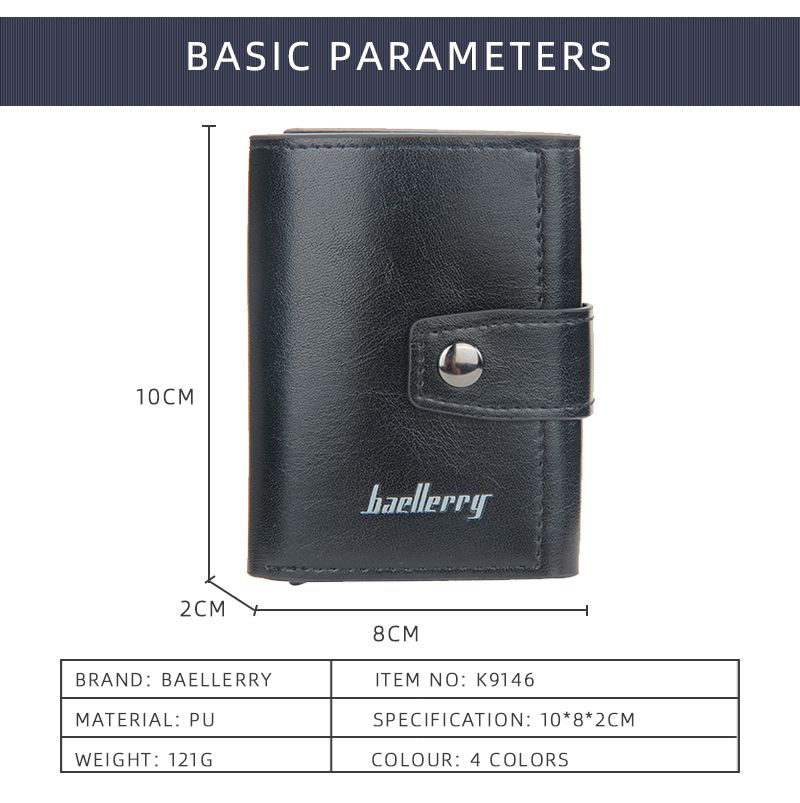 Item specifics Gender: MEN Material Composition: PU Pattern Type: Solid Style: Fashion Closure Type: Hasp Use: Credit Card Item Type: Card & ID Holders Item Weight: 100g Product Category: Card holder Color: Black, coffee, gray, brown Internal structure: Bill holder, photo slot, card slot, check slotItem Length: 8cm Item Width: 2cm Item Height: 10cm Package: 1x coin wallet (color of your choice)