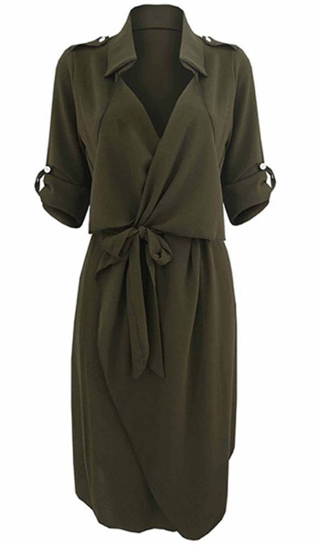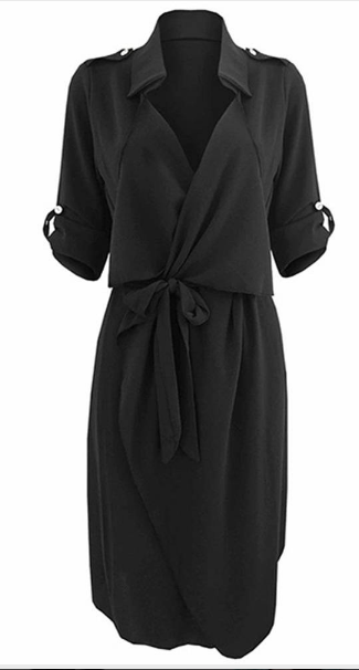 Bow Belt Work Casual Solid Color Lapel Women Shirt Dress