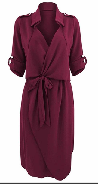 Specification Item Type:Dresses Dress Length:Mini Season:Summer,Spring Collar:Turn-down Collar Size:S,M,L,XL,XXL Pattern:Pure Color Material:Polyester Silhouette:Straight Color:Wine Red,Black,Army Green Sleeve Length:Long Sleeve Style:Casual