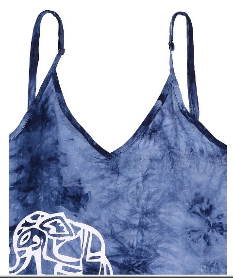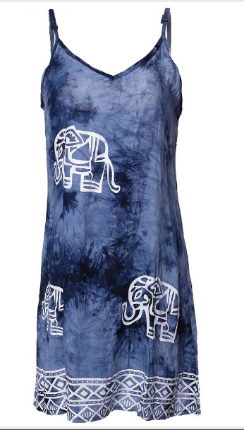 Sexy Women Sleeveless Strap Elephant Printed Beach Party Mini Dress
