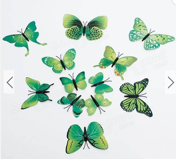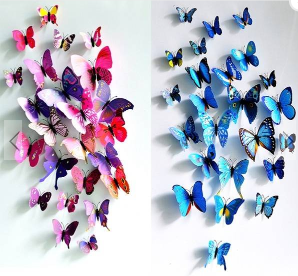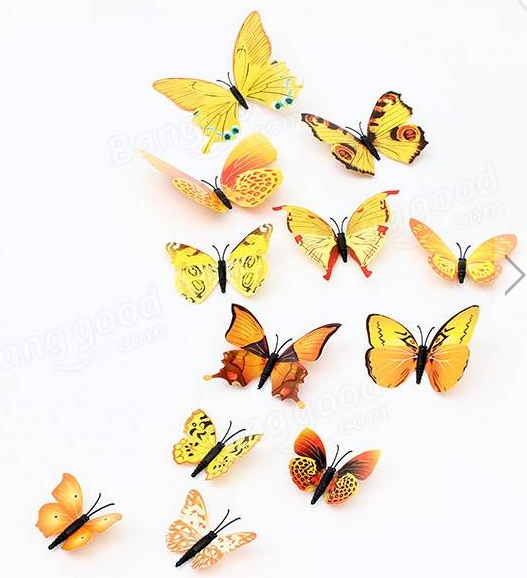 Description: 12Pcs 3D Butterfly Wall Sticker Fridge Magnet Home Decor Art Applique Specification: Material: PVC&Magnet Color: Blue/Purple/Green/Yellow Weight: Approx.25g Package Includes 12pcs: 2 large in size 11x9.5 cm 6 medium of 9.5x8.5 cm 4 small of 6x4.5 cm. Package Includes: 1Bag x 12pcs 3D Butterfly Wall Sticker (Including double-sided adhesive & Magnet)