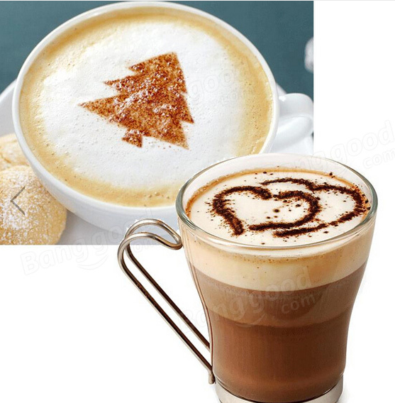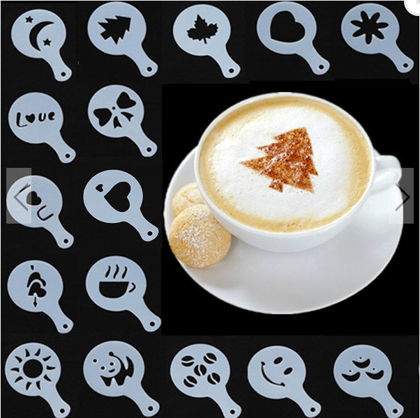 16Pcs Cappuccino Latte Art Coffee Stencils Duster Cake Icing Spray