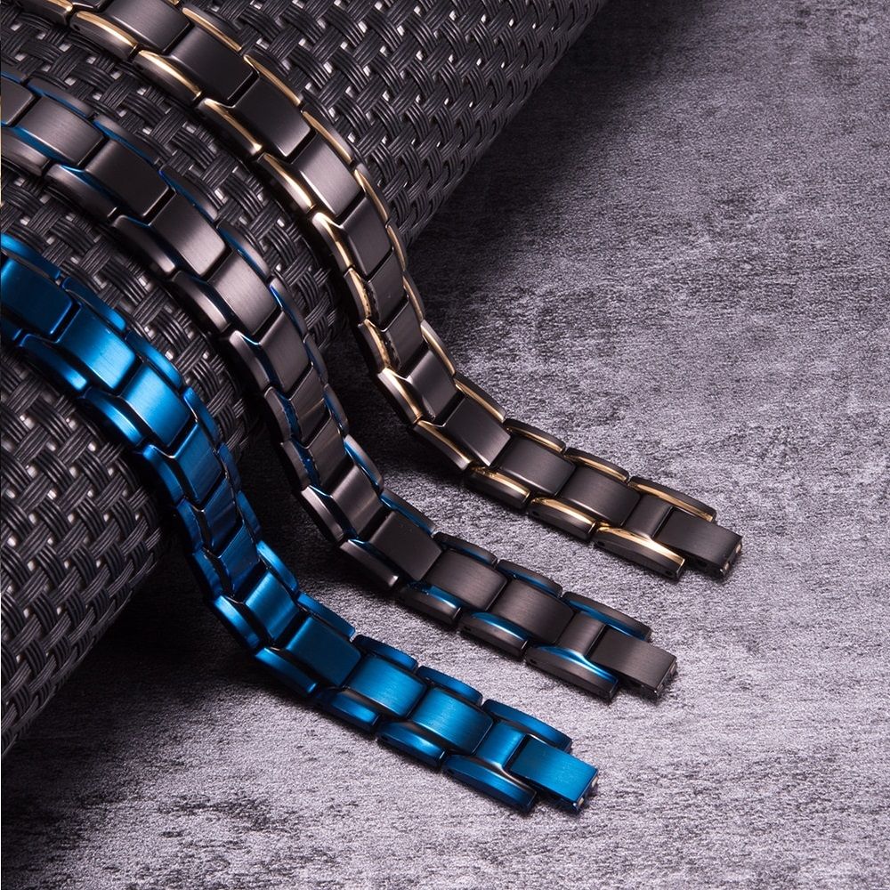 Health Care Germanium Magnetic Bracelet Combining high power 3000 Gauss Magnets and other elements such as Germanium, Anion and Fir Stones, gives extra benefits. These help to relieve the symptoms of arthritis, carpal tunnel and tennis elbow. This unisex modern design bracelet is available in Black with blue, black, black-gold, silver, gold and silver gold. Are you experiencing any of the following issues? !Joint Pain, carpal tunnel, tennis elbow, tendonitis, repetitive strain injury (RSI) !Pain and inflammation in the knees, shoulders, arms, wrist or hands. !Poor circulation associated with diabetes; cold hands and feet. !Difficulty sleeping, anxiety, migraine headaches, fatigue, or stress Helps your body to help Itself! √ Magnetic therapy has been used for years to help reduce inflammation, alleviate pain, and improve blood circulation. √ It is also used to reduce stress & anxiety, improve sleep, and enhance overall well being. Packaging Details Unit Type: piece Package Weight: 0.150kg (0.33lb.) Package Size: 25cm x 15cm x 5cm (9.84in x 5.91in x 1.97in)
