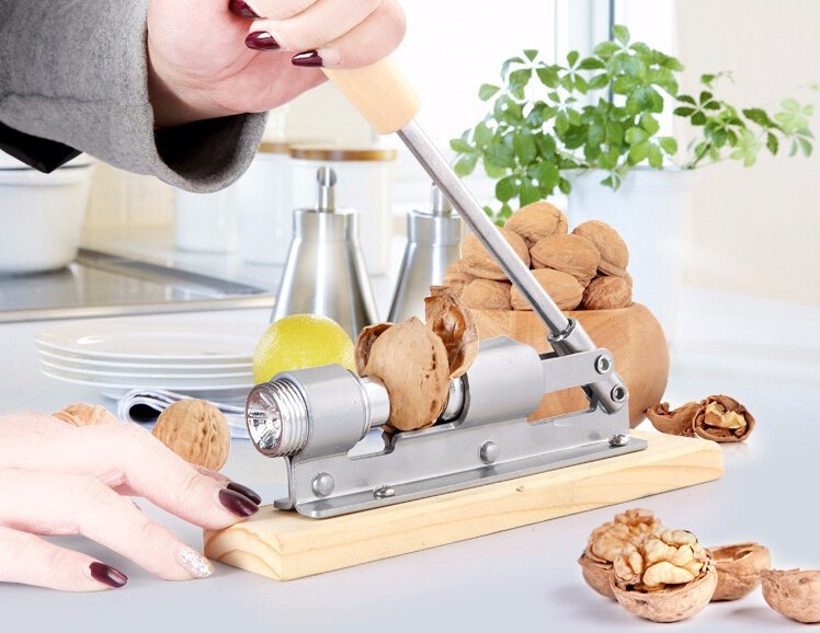 100% Brand New! Material: Aluminum Alloy Castings + Wood Product size: 23cm * 20cm * 5cm (8 x 2 x 7 inches) Advantages: do not pick the size of a walnut, easy effort, durable Use range: As long as it is the nut, can be used by ll sizes of nuts. Has a precise and firm grip mechanism that cracks only the shell and not the core of the nut. Makes a tiresome and boring job faster, easier and more enjoyable. Easily adjustable to all types of nuts, from large walnuts to filberts or almonds and everything in-between. Easy to use, no maintenance required. Made of Stainless Steel and Wood