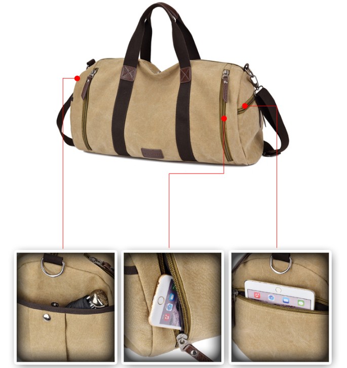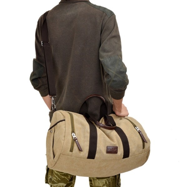 100% Brand New! Item Type: Travel Bag Occasion: Versatile Style: European/American Style Item Width: 20 cm Item Length: 50 cm Item Height: 32 cm Main Material: Canvas Item Weight: 0.83 kg Pattern Type: Solid Closure Type: Zipper Gender: Men Hardness: Soft Material Composition: Cotton Colors: Khaki, Gray, Brown, Light Green