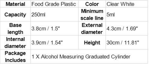 250ML Plastic Home Brew Wine Alcohol Measuring Graduated Cylinder