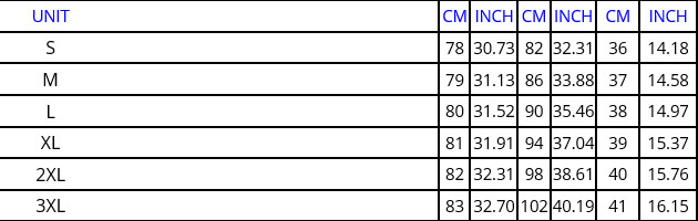 size: S M L XL 2XL 3XL