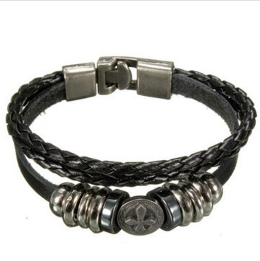 Punk Multilayer Cross Braided Charm Leather Wrap Bracelet Unisex