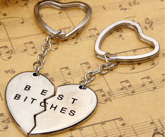 1 Pair 'Best Bitches' Engraved Heart Keychain