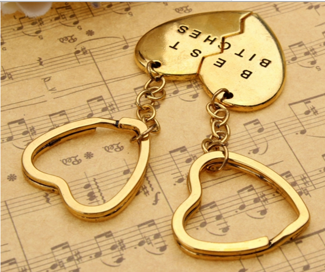 1 Pair Love Heart Couple Alloy Keychain Best Bitches Gift