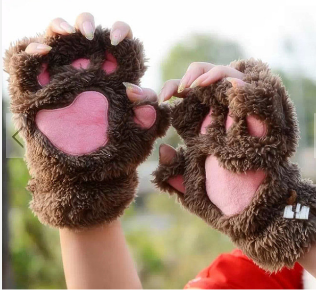 Women Girls Fluffy Plush Bear Cat Paw Fingerless Gloves Paw Glove Winter Warm Mittens