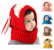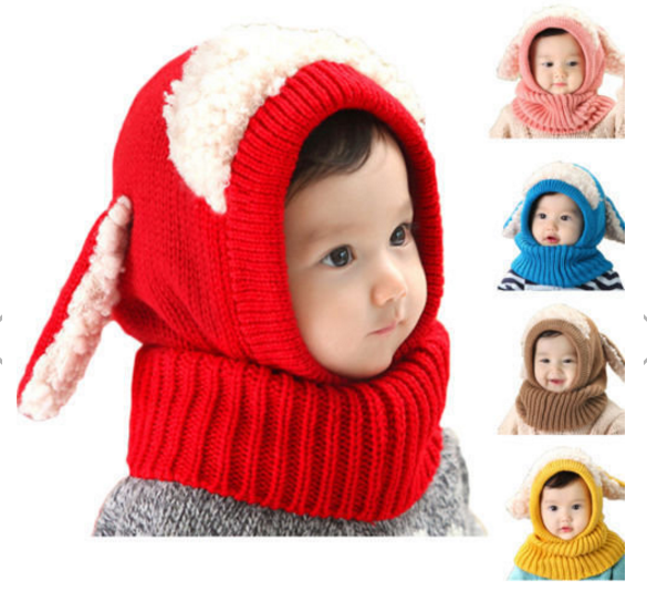 Children Baby Dog Ear Style Wool Cap Hooded Scarf Earflap Hat
