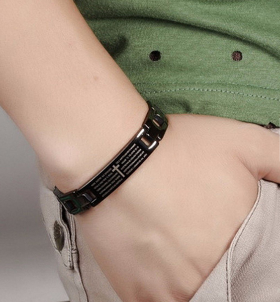 Cross Bilble Black Titanium Men Magnet Bracelet Healing Jewelry Bangle Chain