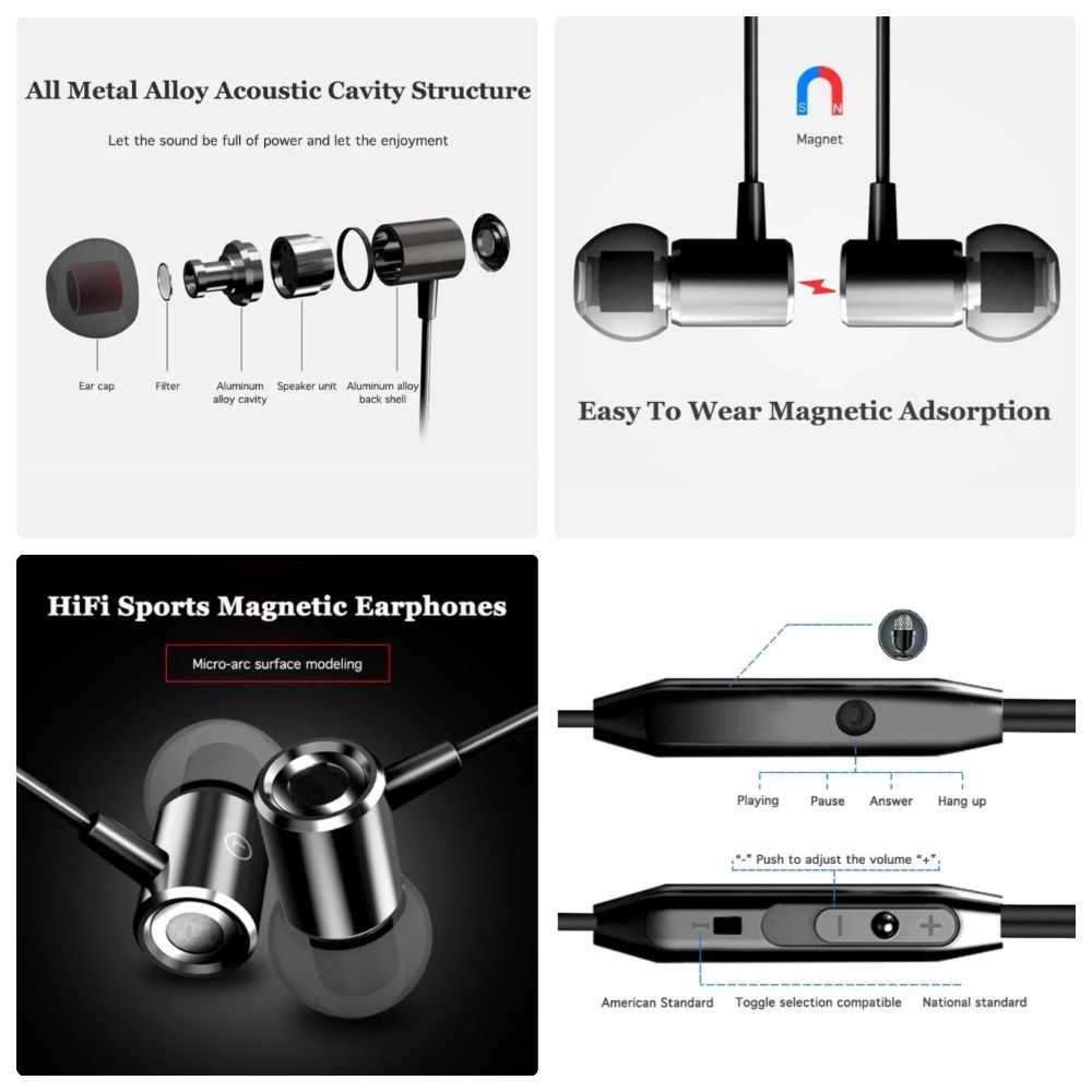 Metal Magnetic Wired Stereo in-Ear Earphones (4 colors)