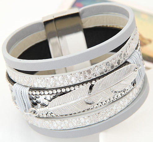 Fashion Alloy Feather Multilayer Wide Bracelets (6 colors)