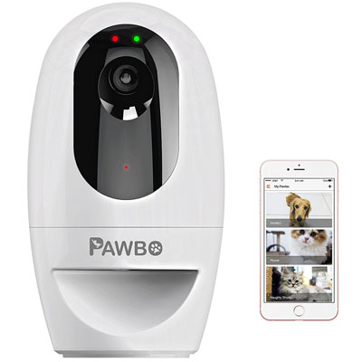 Keep in touch with your furry friends while you're away with the Pawbo Life Pet Camera. Fun and interactive, the Pawbo provides high quality two-way sound and live video streaming to take your pet interactions to a whole new level! Dispense treats for good behavior, or play and interact with your pet with the built-in laser game. Featuring multiple ringtone notifications to get your pet's attention, Pawbo features HD live streaming features 130 degree wide-angle lens with 720p HD and 4x digital zoom. A simple click of the accompanying app launches the two-way video chat. Record videos of your pet or use the snap shot feature to share cute pet pics on Facebook, Twitter and Instagram. Stay together; play together with the Pawbo Life Pet Camera! PRODUCT FEATURES: * Pawbo Life app lets you control multiple Pawbo Life cameras. * Supports up to 8 users online simultaneously. * Camera: 720p HD live video, 130-degree wide-angle lens, and 4x digital zoom. * Built-in microphone/speaker/light pointer/treat dispenser. * Pawbo Life app supports iOS 8 or later (iPhone, iPad, iPod) and Android 4.0.3 or later version. * Wi-Fi environment: required 802.11b/g/n(2.4GHz) connectivity with WPA2-AES encryption. In the box: * Pawbo Life pet camera. * 100~240v AC power adapter. * Quick guide.