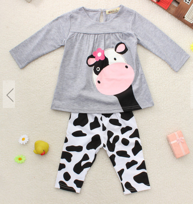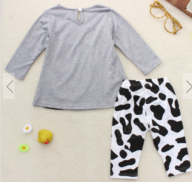 Baby Girls Cow Clothing Sets Top Shirt Trousers Outfit
