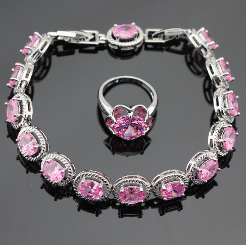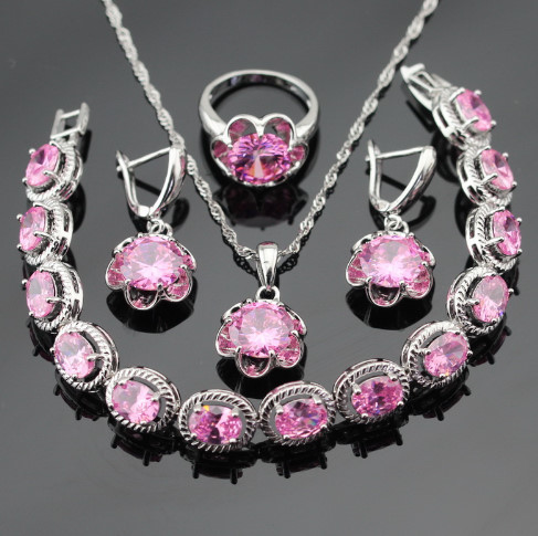 Item Type: Jewelry Sets Fine or Fashion: Fashion Style: Classic Jewelry Sets Type: Bridal Jewelry Sets Material: Semi-precious Stone Occasion: Wedding Gender: Women Metals Type: Silver Included Additional Item Description: Pendant/Necklace Chain/Earrings/Bracelets/Rings Shape\pattern: Flower Main stone color: Pink Quality : AAA Gift: Free Jewelry Box is_customized: Yes Length of Chains: 45+5cm Length of Bracelet: 18+2cm