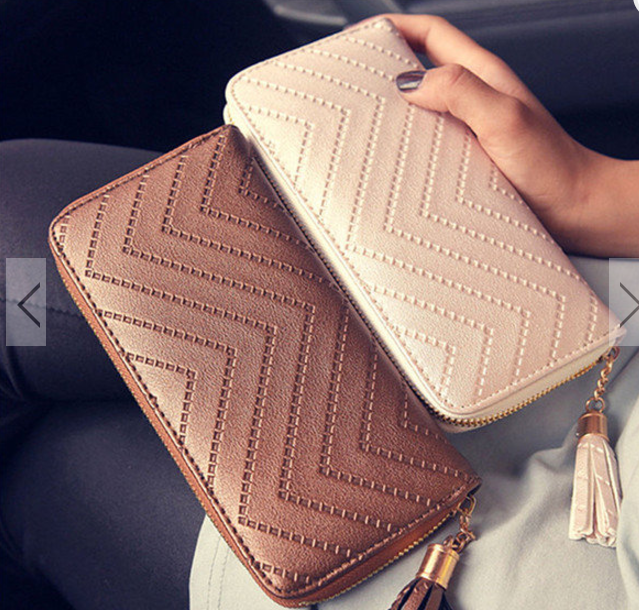 Women Lady Tassel PU Leather Clutch Wallet Long Card Holder Case Purse