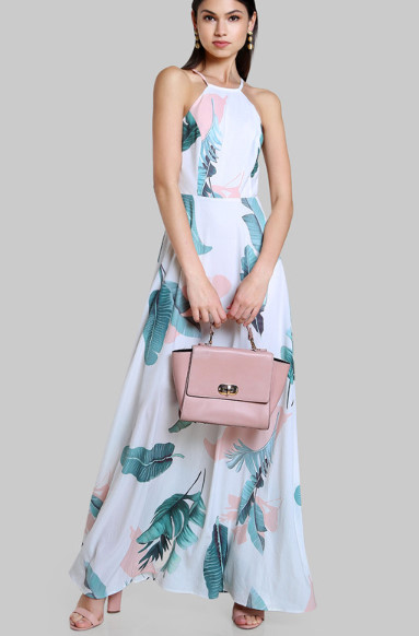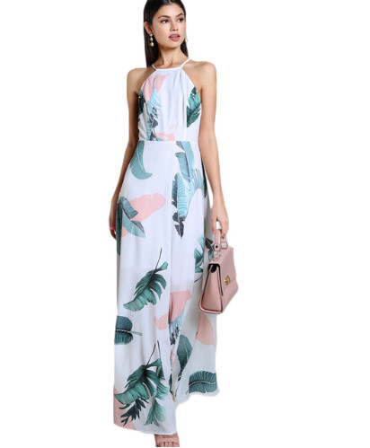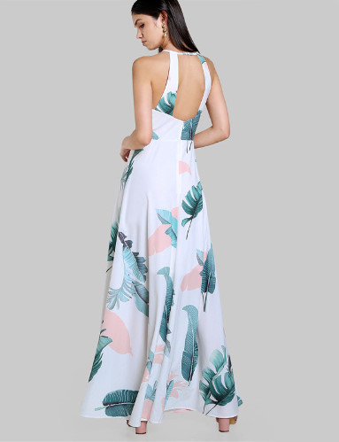Gender: Women Style: Beach Casual Sleeve Style: Spaghetti Strap Silhouette: A-Line Decoration: Hollow Out Sleeve Length(cm): Sleeveless Material: Spandex,Polyester Neckline: Halter Season: Summer Waistline: Empire Dresses Length: Floor-Length Pattern Type: Print Color Style: Natural Color