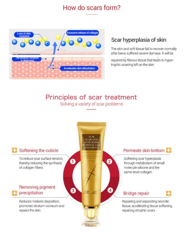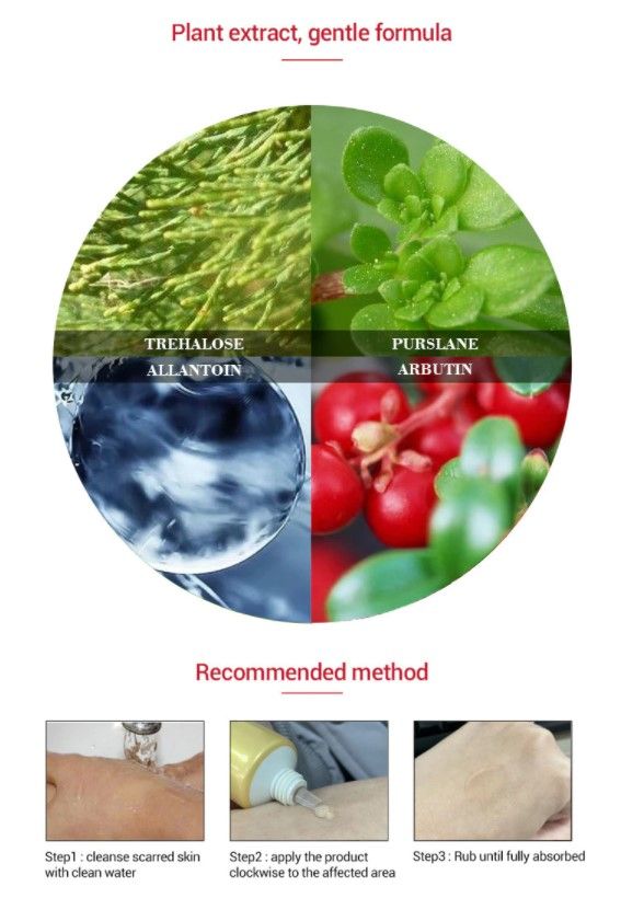 The mild ingredients can easily penetrate into the skin to soften the scar, promote the skin natural renewal and curing.