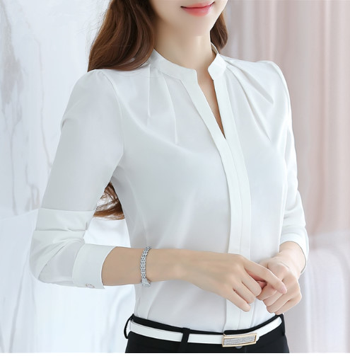 Gender: Women Sleeve Length(cm): Full Pattern Type: Solid Material: Spandex,Polyester ,Chiffon, Coton Collar: V-Neck Style: Formal Fabric Type: Chiffon Decoration: None Clothing Length: Regular Sleeve Style: Regular size: s,m,l,xl,XXL color: White