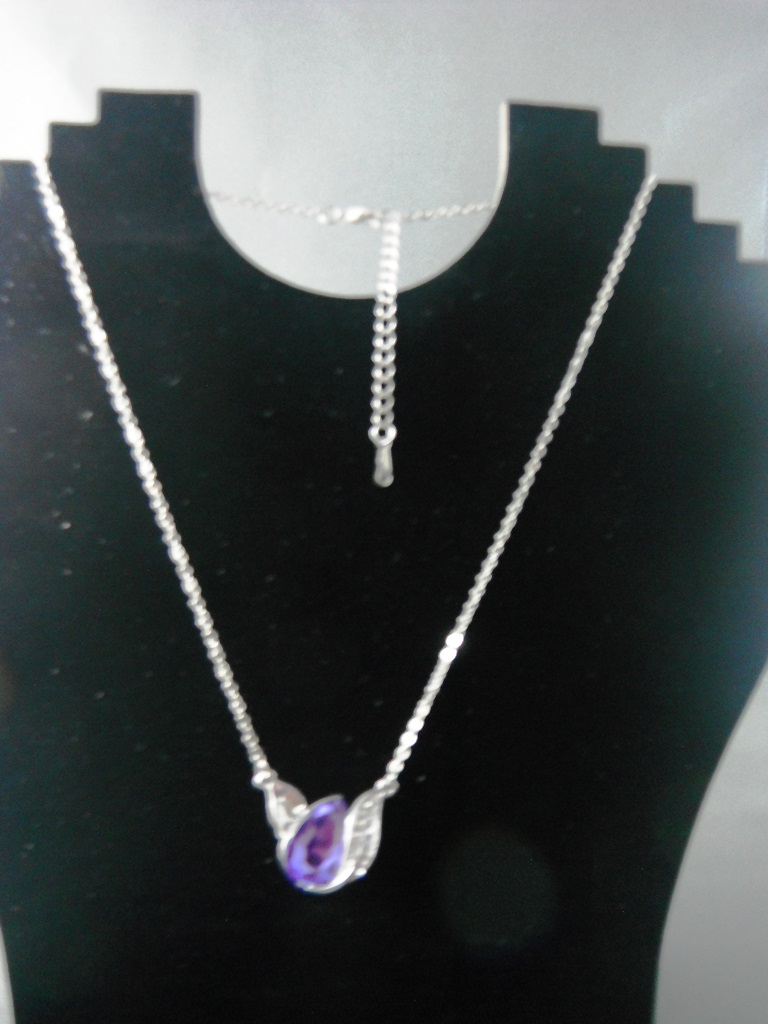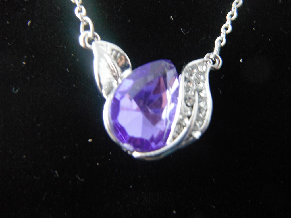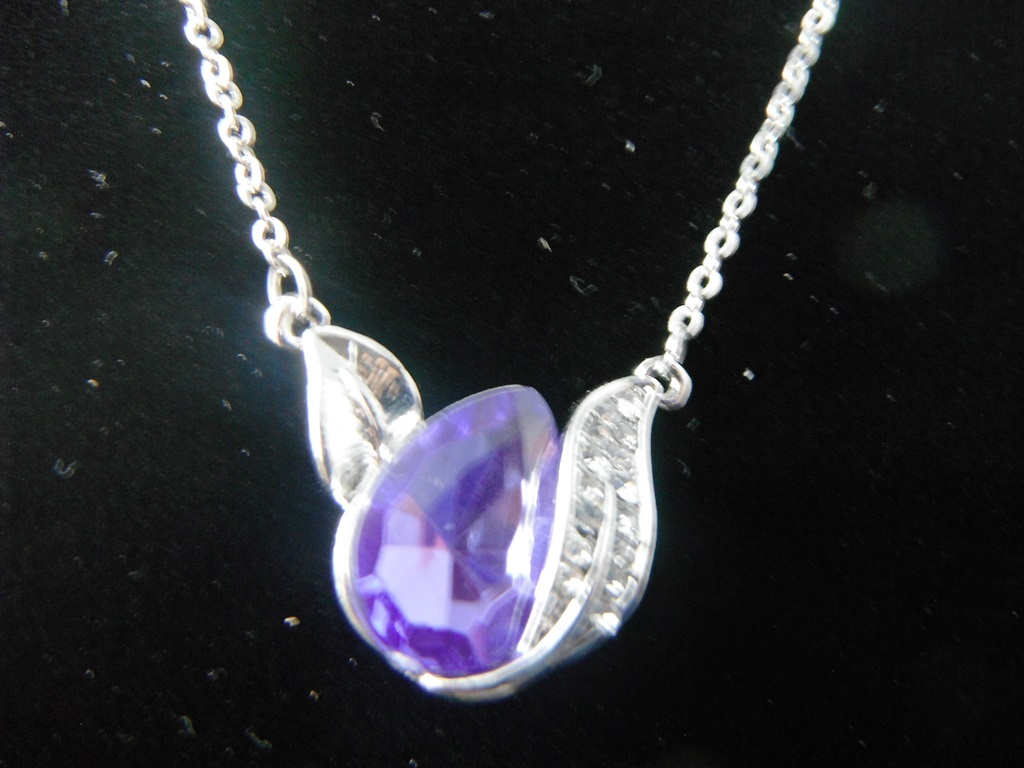 Features: Brand New Metals Type: Zinc Alloy Jewelry Type: Pendant & Necklace Gender: Women, Girls Material: Zinc Alloy, Crystal, Austrian CZ Size; Length of chain : 40 cm (20 cm each side ) /15.75 inches; width: 1 mm; Extension : 6cm Pendant Size: L:: 2 cm/ W: 2.5 cm Occasion:Party, Birthday, Mother Day Gifts, Friendship, Valentine, Anniversary... Description: Women/Girls Pendant Necklace Style:Trendy Shape\pattern: Drop Color: Purple Fine or Fashion:Fashion Package include: 1 Pendant Necklace